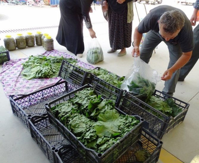 Kütahya'nın Hisarcık ilçesinde Manisa Alaşehir'den getirilerek satışa sunulan asma yaprağı, vatandaşlardan yoğun ilgi görüyor.
