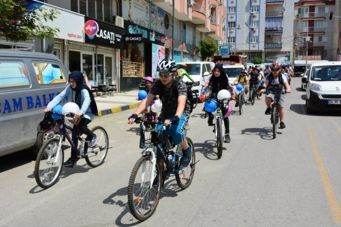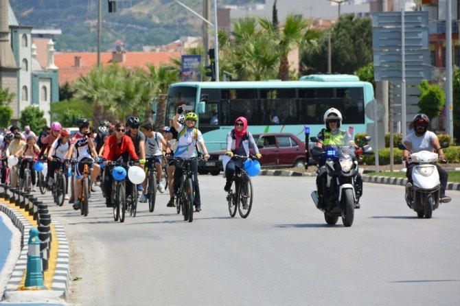 Yunusemre Kent Konseyi binası önünden hareket eden bisikletli grup ‘Arabadan in bisiklete bin’ sloganlarıyla Yunusemre Belediyesi Botanik Parkı’na kadar bisiklet sürerek sağlıklı yaşam ve astım hastalığına dikkat çekti.