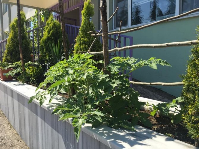 Okul Müdürü Cihat Oy'un öncülüğünde gerçekleştirilen ekimde domates, salatalık, biber, patlıcan, çilek, tere, nane, roka, biberiye gibi meyve, sebze ve yeşillikler yetiştiriliyor. Dikilen fidanlar meyve ve sebze vermeye başladı.
