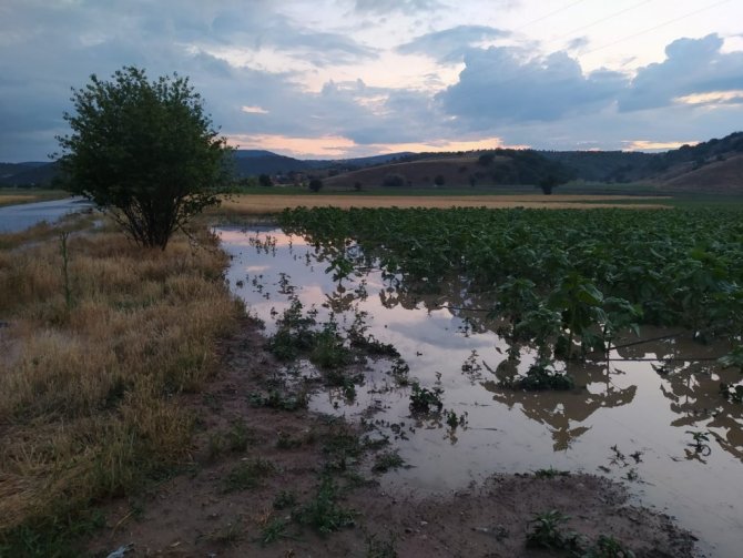 Afyonkarahisar'ın Hocalar ilçesine bağlı Güre köyünde ata tohumu ile ekilen patlıcan tarlaları aşığı yağış sonrası yaşanan sel baskınında sular altında kaldı.