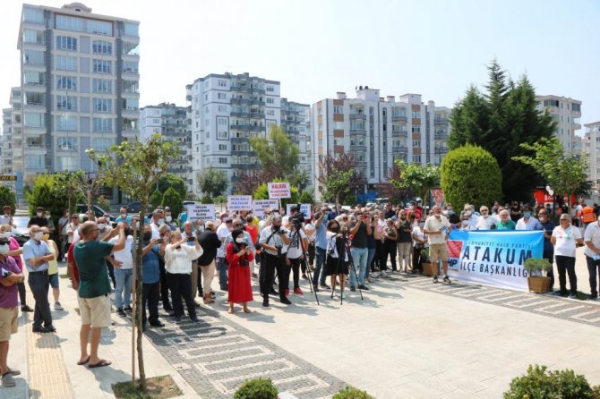 Basın açıklamasının başında konuşan İYİ Parti Atakum İlçe Başkanı Av. Selen Gülhan Çam ve CHP Atakum İlçe Başkanı Turgay Özçelik, İzmir 16. İcra Dairesi'nin belediyenin hesaplarına koyduğu haczi "hukuksuz" olarak nitelendirdiler.