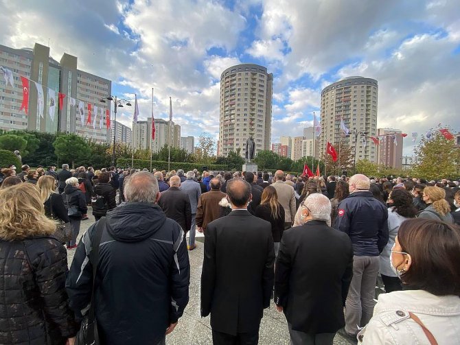 Saat 9'u 5 geçeyi gösterdiğinde ise çalan sirenlerle iki dakikalık saygı duruşunda bulunuldu. Daha sonra İstiklal Marşı'nın söylenmesiyle birlikte bayraklar yarıya indirildi. Tören sonrası Ataşehirliler anıta karanfiller bırakarak, Atasına saygısını ve minnetini bir kez daha gösterdi.