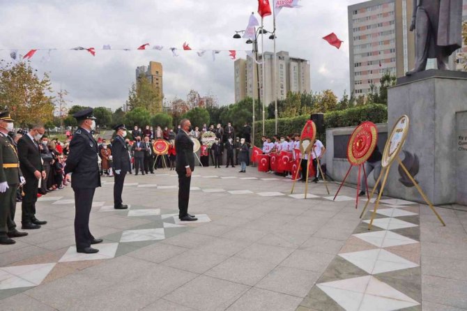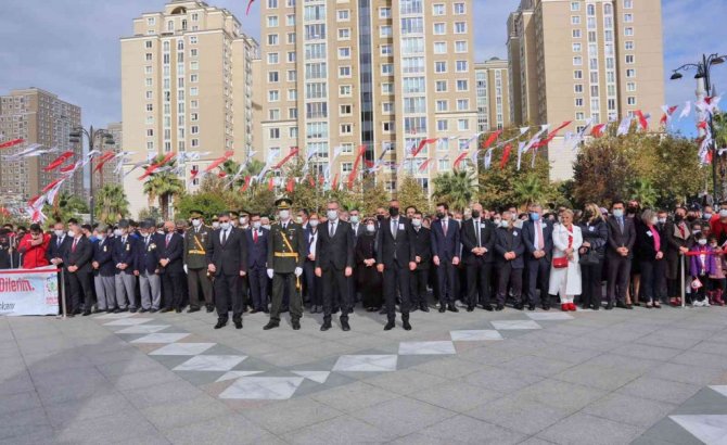 Cumhuriyet Meydanı'nda yapılan törende Ataşehir Kaymakamı İsmail Hakkı Ertaş, Garnizon Komutanı İkmal Albay Volkan Aydın ve Ataşehir Belediye Başkanı Battal İlgezdi, Atatürk Anıtı'na çelenk sundular.