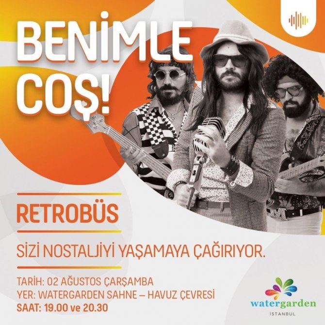 Ataşehir’de bulunan Watergarden İstanbul’da Çarşamba günü sahne alacak tiyatral retro müzik grubu Retrobüs ile nostajli rüzgarları esecek. 60’lı, 70’li ve 80’li yılların efsane sanatçıları Cem Karaca, Barış Manço, Erkin Koray ve İlhan İrem gibi daha birçok ismin şarkılarını ses taklitleri ve kostümleriyle yorumlayan Retrobüs,ziyaretçileri geçmişe götürecek. Grup, saat 19.00 ve 20.30’dayeme,içme ve eğlence merkezinin havuz çevresinde yer alan sahnesinde performansını sergileyecek.