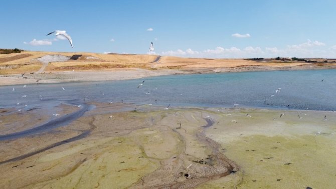 Bu yıl yaşanan kuraklık ile birlikte Atatürk Barajı göletinde su seviyesi düştü.
