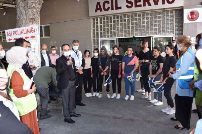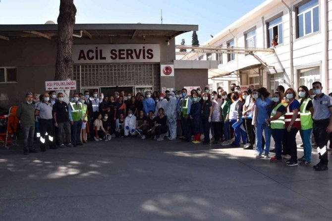 Gerçekleştirilen tatbikata Aydın İl Sağlık Müdürü Dr. Osman Açıkgöz, Sağlık Hizmetleri Başkanı Uzm. Dr. Mustafa Ekici, Başkan Yardımcısı Uzm. Dr. Leman Özlem Özaslantaş da katıldı.