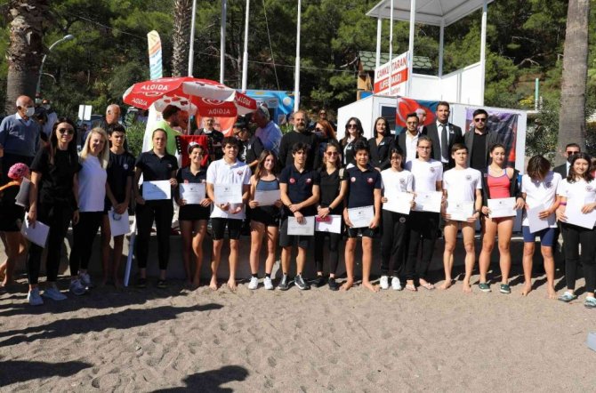 Muğla'nın Marmaris ilçesin de Gazi Mustafa Kemal Atatürk'ün aramızdan ayrılışının 83. yıl dönümü nedeniyle düzenlenen anma programı kapsamında "10 Kasım Ata'ya Saygı" yüzme etkinliği düzenlendi.