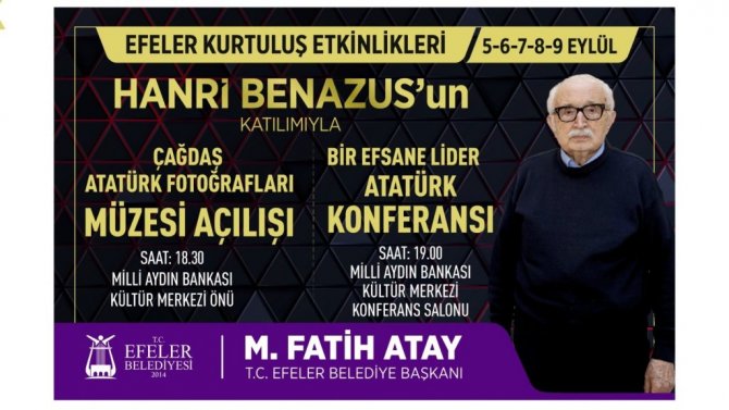 Efeler Belediyesi "Efeler Kurtuluş Etkinlikleri" kapsamında Türkiye'nin en geniş Atatürk fotoğrafları arşivine sahip araştırmacı-yazar Hanri Benazus'u ağırlayacak.