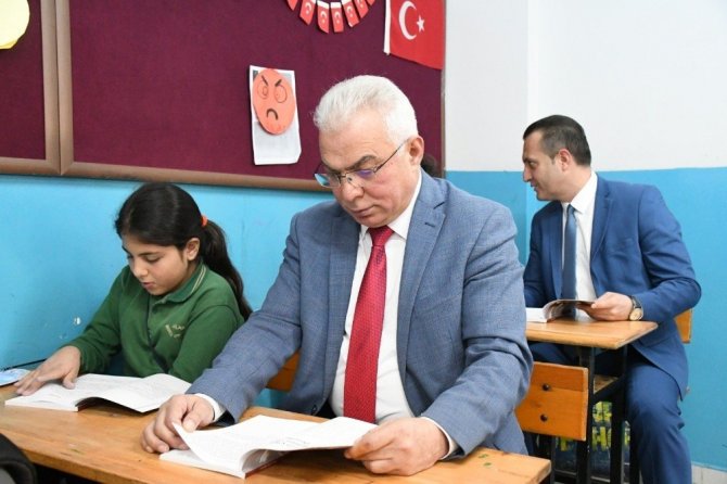 Öğrencilerle sınıfta Nutuk okuyan Bal ve şube müdürleri öğrencilere proje kapsamında düzenlenecek olan bilgi yarışmalarında başarılar dilediler.
