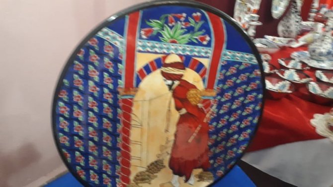 Kütahya’nın Aslanapa ilçesi Halk Eğitimi Merkezi Müdürlüğü’nün yıl sonu sergisinde beğeniye sunulan çini ve yöresel kıyafetlerle ilgi gördü.
