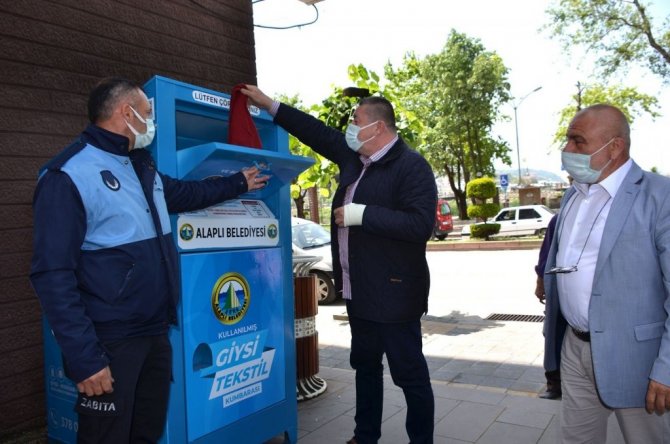 Alaplı Belediyesi, başlattığı sıfır atık projeleri ile gelecek nesillere daha temiz bir çevre bırakmayı amaçlıyor. Bu kapsamda çevreci projelerle doğayı koruma altına alan Alaplı Belediyesi, başlattığı Giysi Tekstil Kumbarası çalışması ile evsel atıklarla kullanılmış tekstil ürünlerini ayırt ederek geri dönüşüme kazandıracak. Alaplı Belediye Başkanı Nuri Tekin, 25 adet Atık Giysi Kumbaralarını vatandaşların yoğun olarak kullandığı park ve caddelere yerleştirdiklerini söyledi. Atık giysiler topladıktan sonra geri dönüşüm fabrikalarına gönderileceğini ifade eden Tekin, şunları söyledi;