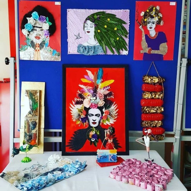 Şehitler Ortaokulu Teknoloji ve Tasarım öğretmenleri Meral Limanlar, Fatma Sarıbeyler, Günnahan Barınkaya ve Nazan Çayan öncülüğünde, öğrencilerin yıl boyunca ‘Hayalimdeki tasarımımı üretiyorum’ ve ’Engelsiz yaşam teknolojileri ile özgün tasarımımı üretiyorum’ konusunda her türlü atık ve geri dönüşüm malzemelerini ortaya adeta sanat eserleri çıkardı.