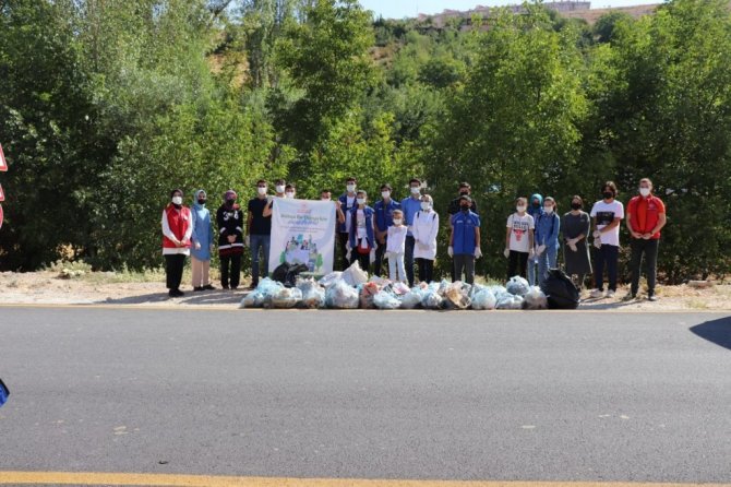 "Hep birlikte temiz bir çevre için sahadayız" sloganı ile çevre temizliği yapan gençler, örnek hareket sergilediler.