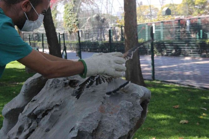 Karatay Hayvanat Bahçesi Müdürü Veteriner Hekim Fatih Altay, İç Anadolu Bölgesi'ndeki vahşi hayvanların rehabilitasyon merkezi olan Karatay Belediyesi Hayvanat Bahçesi'ne bir ihbar ulaştığını ve ekiplerin ihbarı değerlendirdiğini anlatarak, "Özellikle av ve yetiştiricilik maksatlı olarak kullanılan atmacanın gözlerinin ve ayaklarının dikilmiş vaziyette olduğunu gördük. Yaptığımız başarılı operasyon neticesinde gözlerini açtık. Tetkiklerimizde hayvanda bir görme kaybı olmadığı görüldü. O sebepten tekrar doğaya bırakmamız gerekmektedir. Karatay Belediyesi Hayvanat Bahçesi İç Anadolu Bölgesinin rehabilitasyon merkezi olduğu için Orman Genel Müdürlüğü'nden, Milli Parklar Müdürlüğü'nden, diğer belediyelerimizden, Jandarma Genel Komutanlığı'ndan zaman zaman vatandaşın ihbarı neticesinde bu tarz vahşi hayvanlar, yaralı, bakıma, rehabiliteye muhtaç hayvanlar merkezimize getiriliyor. Biz de bunların tedavisini ve rehabilitasyon sürecini tamamladıktan sonra tekrar doğaya geri kazandırıyoruz" diye konuştu.
