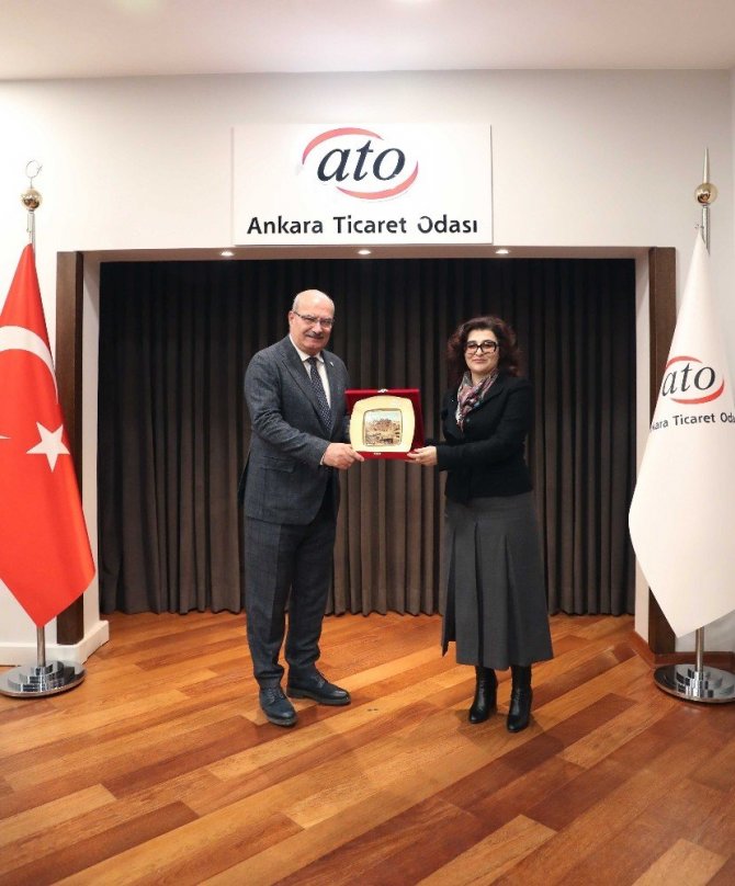 Azerbaycan Cumhuriyeti Ekonomi Bakan Yardımcısı Sevinç Hasanova, bakanlık bürokratlarından oluşan bir heyetle birlikte ATO Başkanı Gürsel Baran’ı makamında ziyaret etti. Ziyaretten duyduğu memnuniyeti dile getiren Baran, Türkiye ile Azerbaycan’ın köklü ilişkilerinin son yıllarda ticari ve uluslararası projelerle birlikte daha da geliştiğini ifade etti. ATO olarak yurt dışına uçuşlar konusunda çalışmalar yaptıklarını anlatan Baran, bu çalışmaların sonucunda Ankara’dan Azerbaycan’ın Başkenti Bakü’ye direkt uçuş başlatıldığını söyledi. İlk uçuşa ATO heyeti olarak katıldıklarını ve Bakü’de iki ülke ekonomisinin daha da yakınlaşmasını sağlamaya yönelik temaslarda bulunduklarını bildiren Baran, “Ankara’dan Bakü’ye gerçekleştirilen direkt uçuşlar iki ülke arasındaki köprüleri kaldırdı ve ticaretimizi geliştirmek için büyük bir adım daha atmış olduk” dedi.