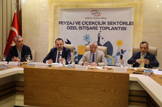 ATO’nun 23 No’lu Aktarlar ve Çiçekçiler Meslek Komitesi ile 53 No’lu Peyzaj ve Çevre Düzenleme Faaliyetleri Meslek Komitesinin düzenlediği “Peyzaj ve Çiçekçilik Sektörel Özel İstişare Toplantısı”, Cumhurbaşkanlığı Danışmanı İbrahim Sönmez, Süs Bitkileri Üreticileri Alt Birliği (SÜSBİR) Yönetim Kurulu Başkanı Ahmet Dündar, Türkiye Peyzaj Mimarları Odası Yönetim Kurulu Başkanı Ayşegül Oruç Kaptan ve sektör temsilcilerinin katılımıyla ATO Duatepe Hizmet Binası’nda yapıldı. Toplantıya başkanlık yapan ATO Başkan Yardımcısı Halil İbrahim Yılmaz, Türkiye’nin bitki tür ve çeşitliliği itibariyle yüksek potansiyele sahip olduğunu aktararak, kentsel peyzaj projelerinde yerli bitki türlerinin kullanılması gerektiğini söyledi. Süs bitkisi ve çiçek üretiminin geliştirilmesi gerektiğine dikkat çeken Yılmaz, “Başkent Ankara’da yetiştirilebilecek ürünlerin belirlenmesi ve ekonomik değere dönüştürülmesi için planlamasının yapılması gerekiyor” şeklinde konuştu.