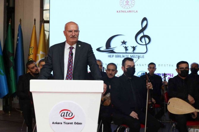 Ankara Ticaret Odası'nın (ATO), Kültür ve Turizm Bakanlığı Telif Hakları Genel Müdürlüğü desteğiyle ATO İDEA koordinatörlüğünde, başkentin tarihi geçmişinde önemli bir yere sahip olan Seymenlik kültürünü yaşatmak ve salgın sürecinden olumsuz etkilenen kültür ve eğlence sektöründe faaliyet gösteren 105 sanatçıya destek olmak amacıyla hayata geçirdiği "Hep Birlikte Müzikle" Projesi'nin açılış programı ATO Fuaye Alanı'nda gerçekleştirildi. ATO Başkanı Gürsel Baran, Çankaya Kaymakamı Hüdayar Mete Buhara ve Mamak Belediye Başkanı Murat Köse'nin açılış konuşmalarını yaptığı programa Altındağ Belediye Başkan Yardımcısı Abdurrahman Karabudak, Tesisat İnşaat Sanayi Malzemecileri Derneği (TİMKODER) Yönetim Kurulu Başkanı Fatih Ayhan, ATO Yönetim Kurulu Üyeleri Nuh Acar ile ATO Komite ve Meclis Üyeleri katıldı.