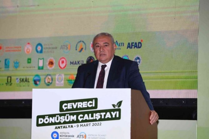 "Antalya Çevreci Dönüşüm Çalıştayı"nda konuşan ATSO Başkanı Davut Çetin, Antalya ticaretinde akıllı ve dijital dönüşümle, akıllı lojistik gibi hamlelerle katma değeri yükseltmeliyiz. İnşaat sektörümüzün hedefi akıllı kent dönüşümü ve akıllı binalar olmalıdır. Çevre bizim ekmek teknemizdir" dedi.