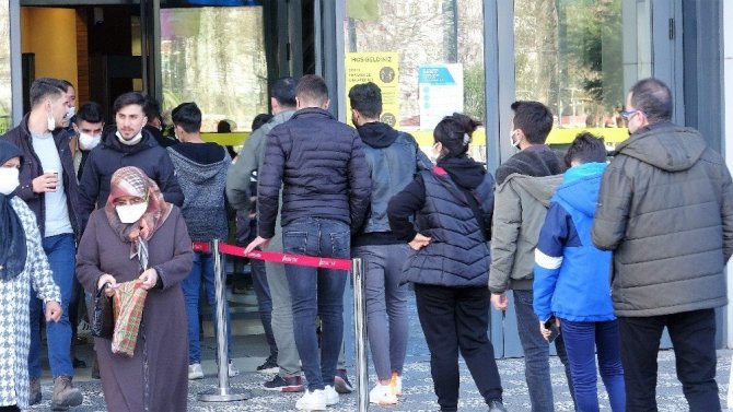 AVM’de uzun kuyruklar oluştu, sosyal mesafe unutuldu
