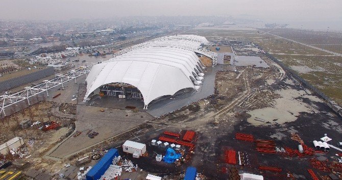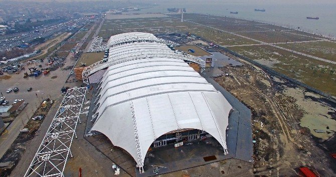 Yenikapı’da yapımı devam eden ve Mart ayında hizmete girecek olan Avrasya Gösteri ve Sanat Merkezi’nin inşaatını bugün İstanbul Büyükşehir Belediye Başkanı Kadir Topbaş ziyaret etmişti. Belediye Başkanı Topbaş’ın Türkiye’nin en büyük çadırı diye nitelendirdiği merkez havadan görüntülendi. Görüntüler merkezin büyüklüğünü net bir şekilde gösterdi. Avrasya Gösteri Merkezi, bittiğinde 10 bin metrekareye yakın zemini, diğer alanları ile birlikte 18 bin 400 metrekare civarında bir kapalı alana sahip olacak.