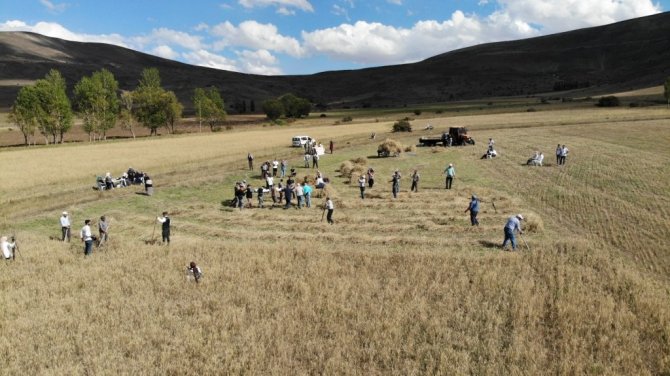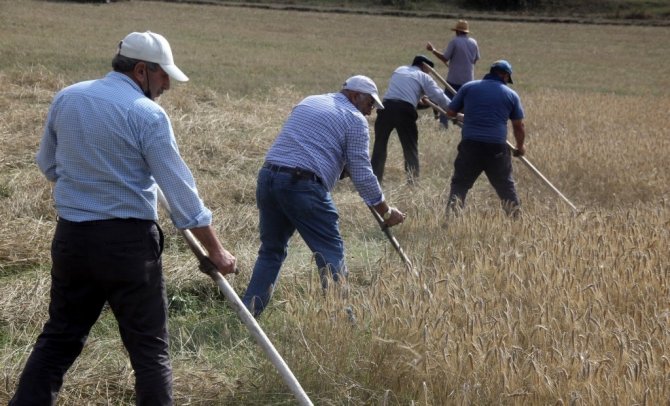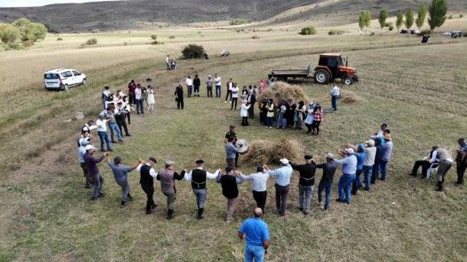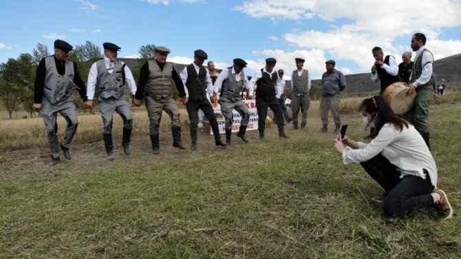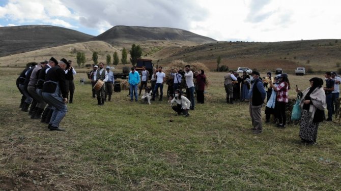 Renkli görüntülere sahne olan festivalde katılımcılar buğday tarlasında tırpan sallayarak, halay çekip, horon teperek mutlu oldu.