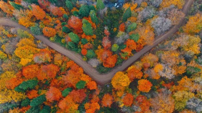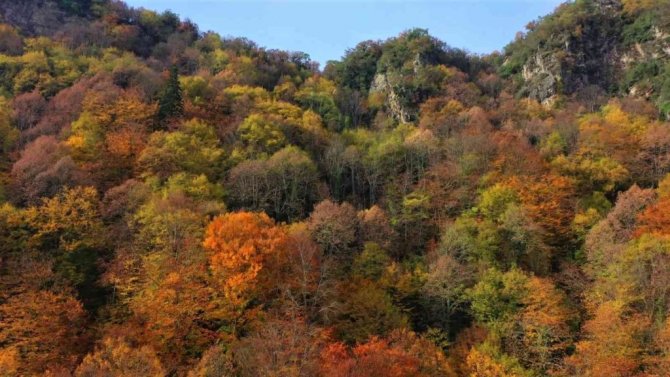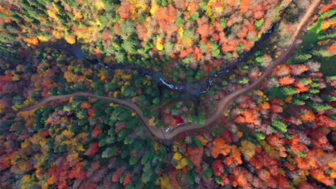 Sahip olduğu yaban hayat ve bitki çeşitliliği ile insanların ilgisini çeken ve acil korunması gereken 100 sıcak noktadan biri ilan edilen Yenice ormanlarının hazan renklerine bürünmesinin ardından kartpostallık görüntüler ortaya çıktı.