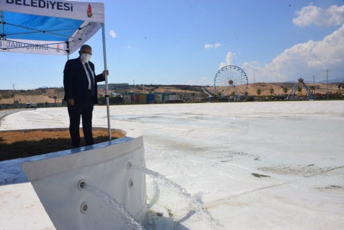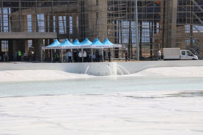 Kahramanmaraş'ta 2 milyon kişinin ziyaret etmesi planlanan EXPO alandaki 70 dönümlük Avrupa'nın en büyük kristal lagün havuzunda su tutma işlemine başlandı.