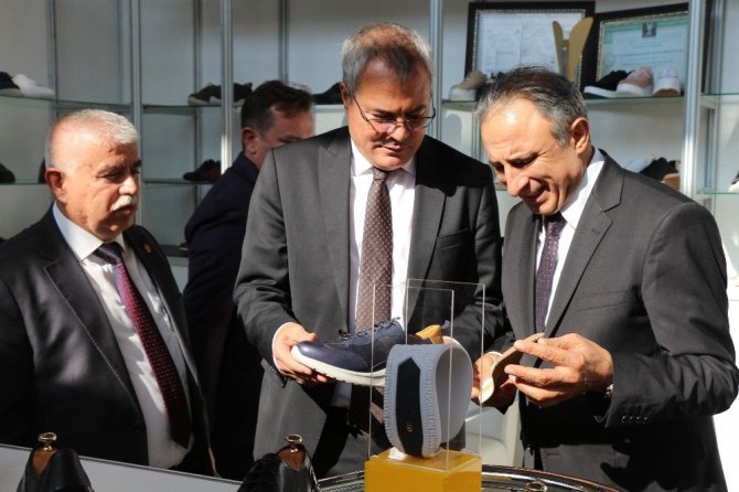 Açılışın ardından fuarda yer alan firmaların stantlarını gezen protokol üyeleri, üreticilerden ayakkabılar ve sektör hakkında bilgi aldı.