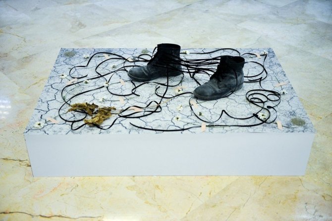 Ayakkabıları fotoğraf sergisine taşıdı