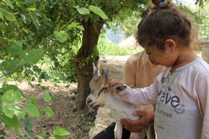 Ayakları tutmayan yavru yaban keçisini evinde besledi