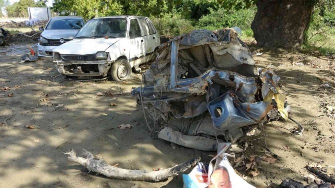 Sinop'un Ayancık ilçesinde yaşanan sel felaketinde zarar gören araçlar şehir girişinde bir araba mezarlığı oluşturdu.