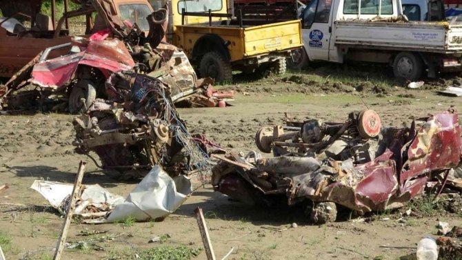 Yüzlerce aracın toplandığı alanda bir kısmı imha edilmek üzere çeşitli illere gönderildi. Diğerleri ise beklemeye devam ediyor. Alan adeta bir araba mezarlığı görüntüsü veriyor. İçişleri Bakanı Süleyman Soylu Sinop, Bartın ve Kastamonu'da yaşanan sel felaketinde toplam 3 bin 468 aracın zarar gördüğünü açıklamıştı.