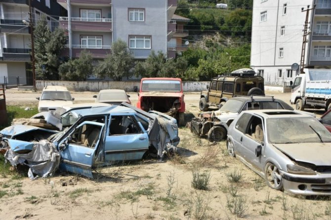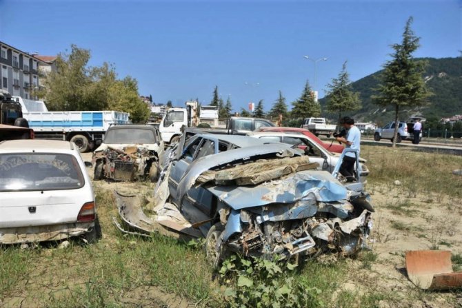 Ayancık ilçesinde yaşanan sel felaketi sonrası bina bahçeleri, yollar ve çay yatağı gibi birçok alanda hurdaya dönmüş araçlar bulundu. Yüzlerce aracın zarar gördüğü ilçede bu araçların bir kısmı ise park olarak kullanılan bir alanda toplandı. Sel sularıyla kullanılmaz hale gelen araçlar hasar tespiti için bu alanda bekletiliyor.