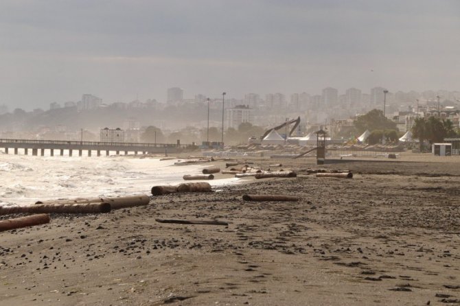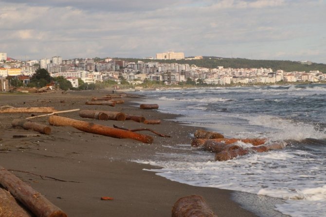 Sinop Ayancık'ta yaşanan sel felaketinde denize sürüklenen tomruklar Samsun sahiline vurmaya devam ediyor.