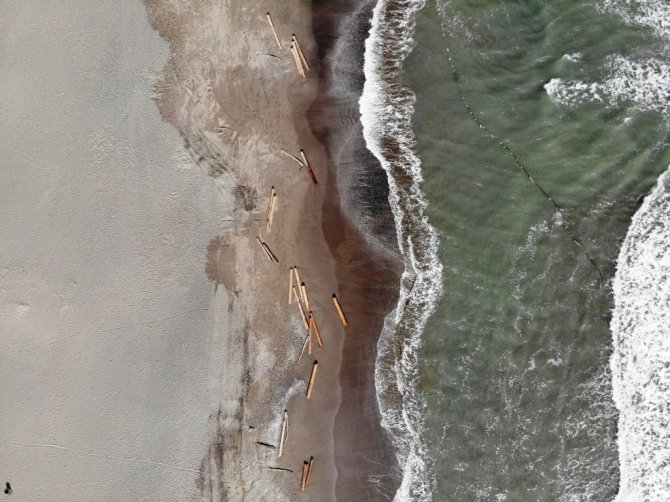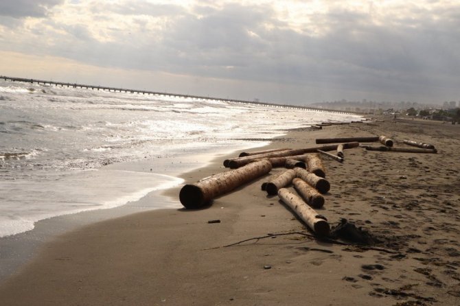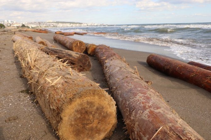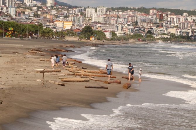 Sinop Ayancık'ta yaşanan sel felaketinde denize sürüklenen tomruklar Samsun sahiline vurmaya devam ediyor. 200 km sürüklenen dev tomruklardan onlarcası Samsun'un Atakum ilçesi sahillerine ulaştı.
