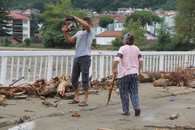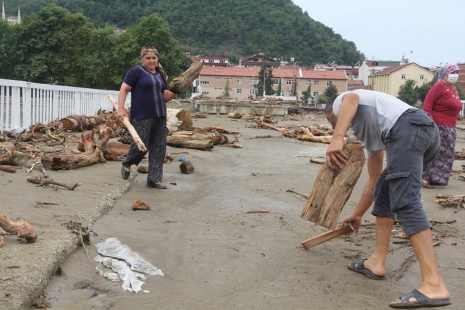 Şehrin dört bir yanına dağlardan sel sularıyla birlikte ağaç parçaları, dallar ve tomruklar da taşınmıştı. Görevliler bir yandan şehirdeki enkazları kaldırmaya başlarken vatandaşlarda kışlık ihtiyacını karşılamak üzere bu odunlara yöneldi. Yıkılan köprü üzerinde de sabah saatlerinden itibaren vatandaşlar odun toplamaya başladı. Küçük odun parçalarını toplayarak istifleyen vatandaşlar, büyük ağaç kütüklerini ise motorlu testere ile bölerek taşınabilecek hale getirdi. İstiflenen odunlar kışın ısınmak amacıyla evlere taşınırken bir yandan da şehrin temizliğine katkı sunuldu.