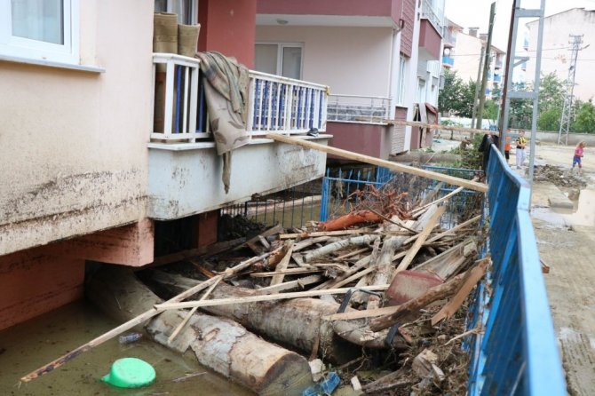 Batı Karadeniz Bölgesi'nde etkili olan sağanak yağış birçok ilde hayatı felç etti. Sinop'ta ise yağışlardan en çok etkilenen ilçe Ayancık oldu. Ayancık'ta sel suları beraberinde getirdiği tomruklarla birlikte önüne çıkan her şeyi Ayancık Çayı'na katarak sürükledi. İlçede park halinde bulunan neredeyse tüm araçlar zarar görürken, birçok ev iş yerine çamur ve tomruk doldu. Birçok binanın zemin katı su ve tomruklarla dolarken, apartmanların girişi de çamurla kaplandı. Evlerine apartmanın girişinden giremeyen vatandaşlar ise çareyi 1. katta tahtadan geçit yapmakta buldu. Apartmanda oturan vatandaşlar, üst katlardaki evlerine girip çıkmak için 1. katın balkonuna dayadıkları tahta geçidi kullandı.