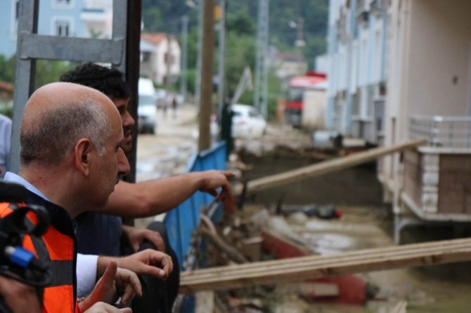 Ulaştırma ve Altyapı Bakanı Adil Karaismailoğlu da bölgede incelemelerde bulunuyor. Ekiplerle toplantı yapan Karaismailoğlu zaman zaman helikopterle zaman zaman da yürüyerek selin vurduğu mahalleleri bir bir gezerek son durumu inceliyor. Vatandaşlarla sohbet eden Karaismailoğlu, yaraların sarılması için ellerinden gelen çabayı gösterdiklerini söyledi.