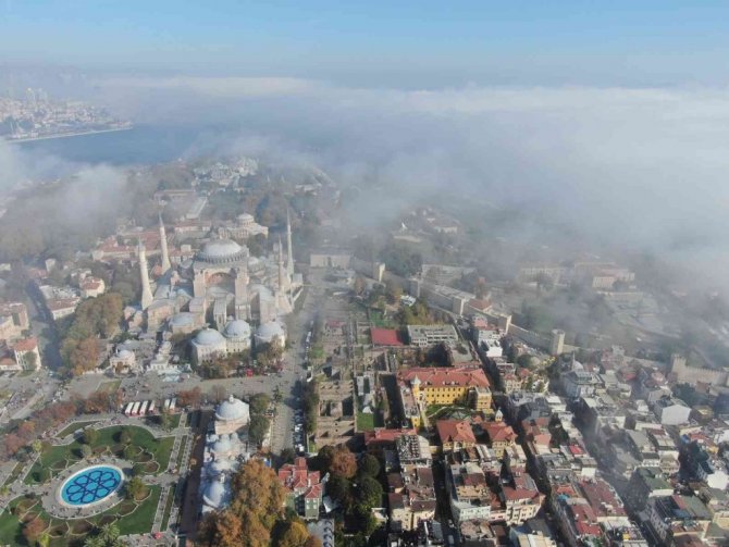Etkili olan sis tarihi yarımadada ise kartpostallık görüntüler oluşturdu. Ayasofya-i Kebir Cami-i Şerifi ve Sultanahmet Camii sis bulutu altında adeta kayboldu. Tarihi yarımadayı kaplayan sis bulutunun oluşturduğu masalsı anlar, drone ile havadan görüntülendi.