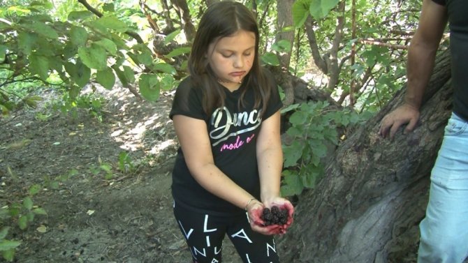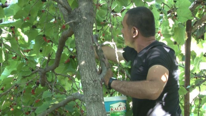 Uğur, "Dededen kalma büyük karadut ağaçlarımız var. Bir tanesi burada diğer yan tarafta. Kendi yetiştirdiğimiz fidanlarda var. Şu gördüğünüz ağaç tahmini olarak 200 yaşında var. Burada Gökler Köyü'müz var. Orada bin yıllık karadut ağacı var. Onu köyün muhtarı Anıt Ağaç olarak işletti. Türkiye'de de 2 bin yıllık karadut ağaçları olduğunu duydum. Çok uzun ömürlü bir ağaç. Karadut temmuz ayının ilk haftası çıkıyor. İki ay sürüyor. Büyük ağaçlarımızda Eylül ayının 10'una kadar dut oluyor. Toplaması çok yavaş ve elleri boyuyor. Tek tek alıp kovaya atmanız gerekiyor. Ben mesela yarım saatte 2 kg ancak toplayabildim. Beyaz dutta öyle değil yarım saatte 20-30 kg toplayabilirsiniz. Beyaz dut kilogramı 10-15 TL arasında satıldı. Karadutta kilogramı 25-35 TL arasında satıldı" dedi.