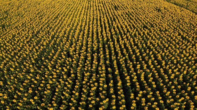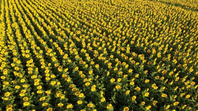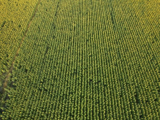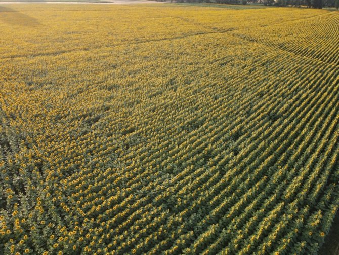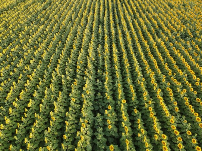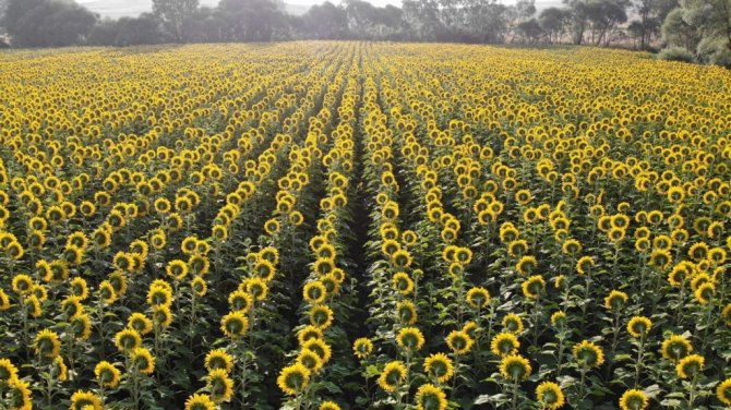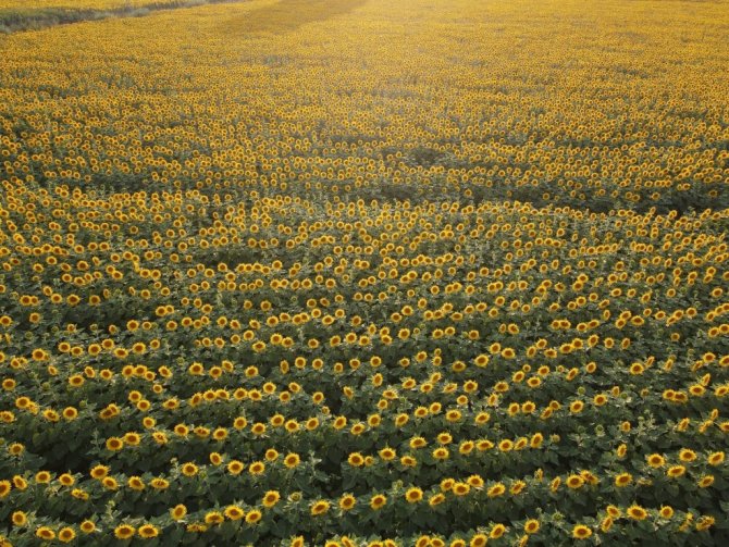 Adını Düvenci beldesinden alan ve kentin en büyük ovaları arasında yer alan Düvenci Ovası'nda havadan çekilen görüntülerde, uçsuz bucaksız ayçiçeği tarlaları kartpostallık görüntüler oluşturdu.