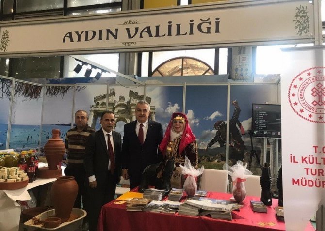 Ankara’da düzenlenen 12. Ege İlleri Tanıtım Günleri etkinliğinde Aydın Valiliği bünyesinde açılan stantta, Aydın’ın tarihi ve turistik yerleri ile yöresel ürünlerin tanıtımı yapılıyor.