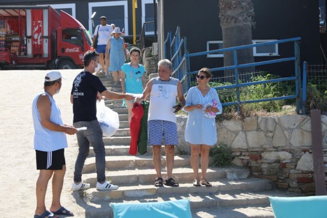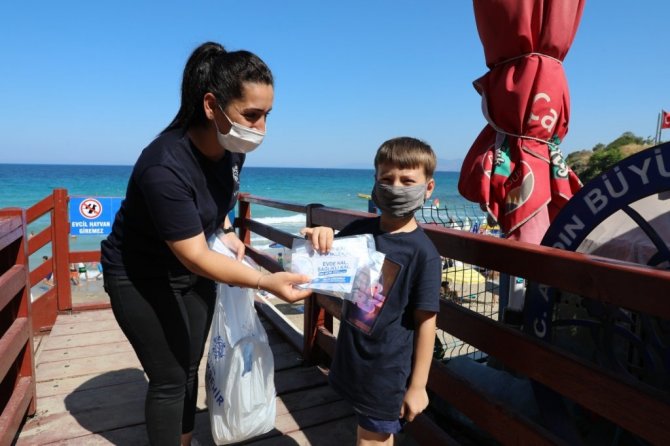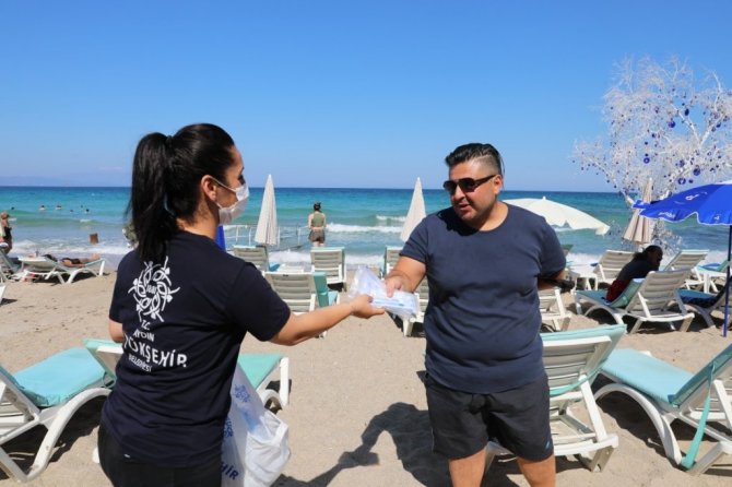 Aydın Büyükşehir Belediyesi sahillerde maske dağıttı