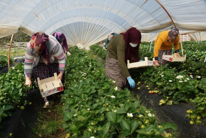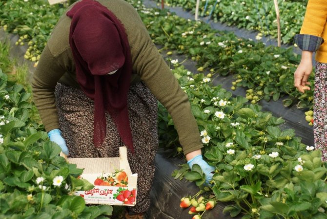 Çilek toplamak için sabah erken saatlerde işe koyulan kadınlardan Sevinç Ova ise "4 yıldır çilek toplama işi yapıyorum. Ürünler güzel, inşallah böyle devam eder. Her işin zorluğu olduğu gibi bu işin de zorlukları var ama işini sevdikten sonra bunun bir önemi yok" diye konuştu.