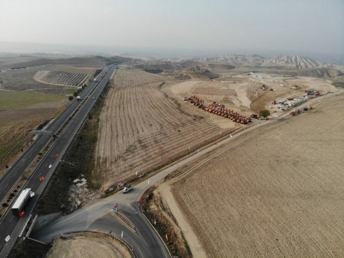 Otoyol kazı çalışmaları havadan görüntülendi