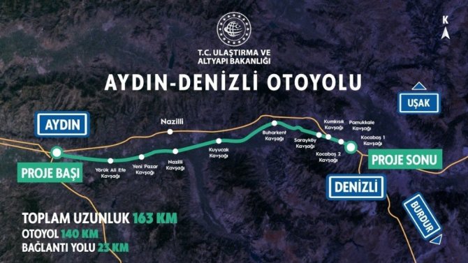 Ulaştırma ve Altyapı Bakanı Karamismailoğlu, akşam saatlerinde sosyal medyadan Aydın - Denizli otoyol projesi için paylaşımda bulundu. Bakan Karamismailoğlu, “Efeler diyarı Ege’mizin iki önemli merkezi arasında köprü olacak projemiz Aydın - Denizli Otoyolu için yarın temel atıyoruz!” dedi. Bakan Karamismailoğlu’nun temel atma töreni için bugün saat 11.00’de Denizli Çevre yolu Salihağa kavşağında olması bekleniyor.