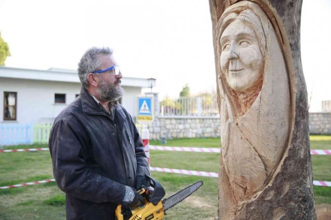 Aydın Büyükşehir Belediye Başkanı Özlem Çerçioğlu'nun Aydın'a kazandırdığı Aydın Tekstil Alanı'ndaki çalışmalar hızla ilerlerken, ömrünü tamamlamış ağaçlar sanatla buluşuyor.