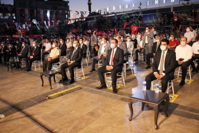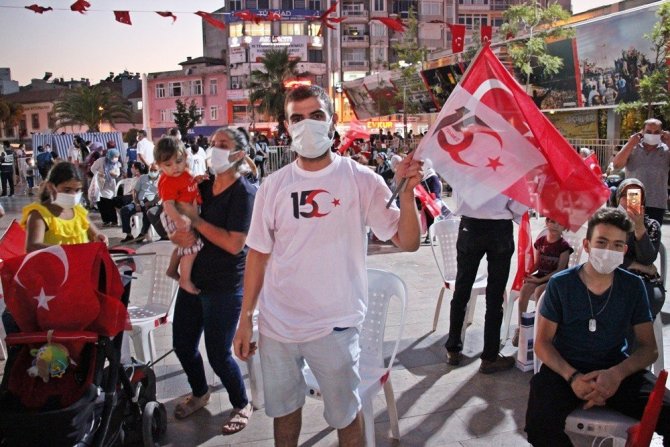 Aydın Valiliği tarafından düzenlenen etkinlikler kapsamında hain darbe girişiminin 5'inci yıl dönümünde şehit düşen kahramanlar anıldı. Vali Hüseyin Aksoy, protokol üyeleri ve vatandaşların katıldığı program saygı duruşu ve İstiklal Marşı'nın okunması ile başladı. Mehteran takımı gösterisi, Cumhurbaşkanı Recep Tayyip Erdoğan'ın ulusa sesleniş konuşması ve Kuran-ı Kerim tilavetinin ardından konuşan Aydın Valisi Hüseyin Aksoy, "Biz bugün ay yıldızlı bayrağımızın altında özgürce nefes alıyorsak, geleceğimize güvenle bakabiliyorsak bunu şehitlerimize, gazilerimize ve onların yolundan giden kahramanlarımıza borçluyuz. Bu ülke ne zaman dara düşmüşse, bu vatan ne zaman vatandaşına, yiğitlerine, efelerine, kızanlarına ihtiyaç duymuşsa tüm Anadolu halkı gibi Aydın'ın efeleri, kızanları da o noktada hazır olmuştur. Her zor noktada, her dara düştüğümüzde nasıl efeler olmuşsa, 15 Temmuz'da da bu meydanları sizler doldurdunuz, bu ülkeye kast edenleri haddini bir kez daha bildirdiniz. Yörük Ali Efe'nin torunları, Nedip Cengiz Eker olarak tekrar ortaya çıktı ve 15 Temmuz'da gereken dersi verdi" dedi.