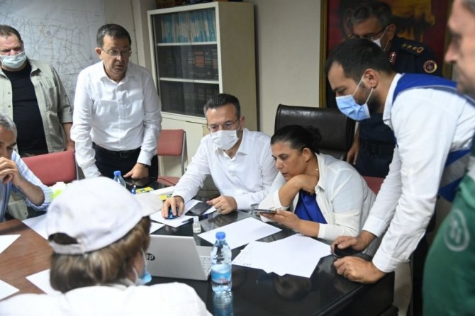 Aydın Valisi Hüseyin Aksoy, çalışmaların karadan ve havadan devam ettiğini ve bölgede 1262 personelin görev yaptığını belirtti.