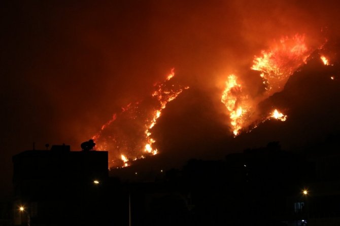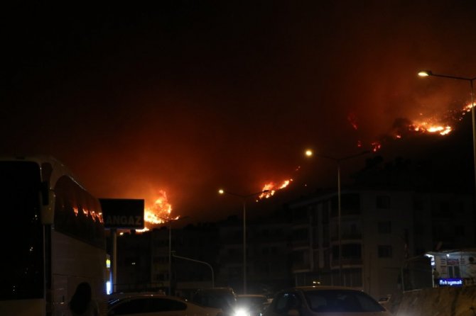 Bölgede şiddetli rüzgar etkisini sürdürürken, bir taraftan ekipler yangına müdahale etmeye çalışıyor bir yandan da evinde kalan vatandaşların tahliyesini gerçekleştiriyor.